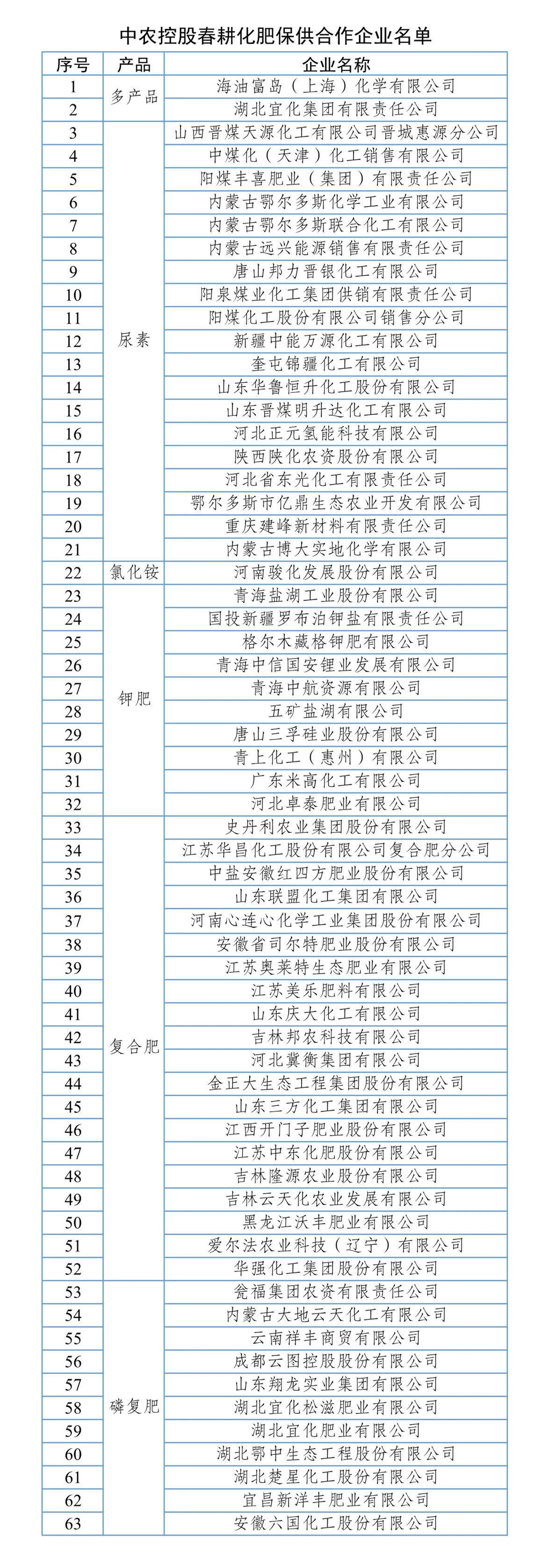 目前已有63家国内知名化肥生产企业与中农控股签订了《2021年春耕化肥保供合作协议》,100家国内外农药主要生产企业与中农立华签订《2021年春耕农药保供合作协议》(名单附后)。