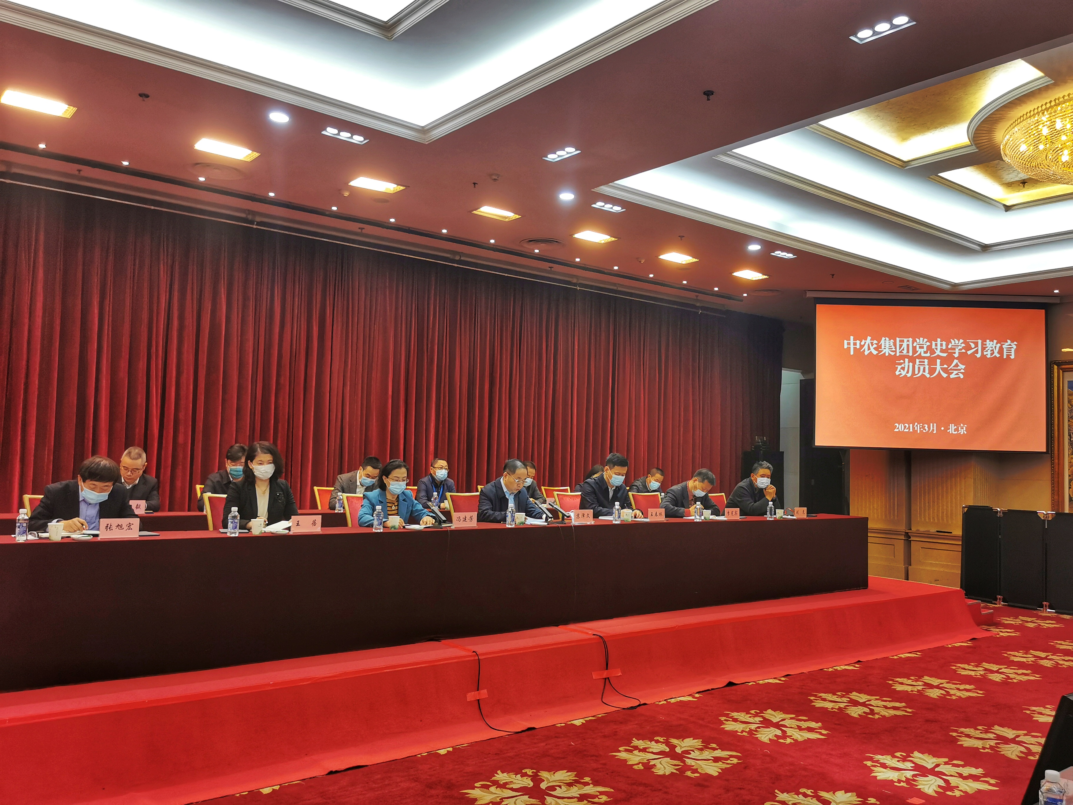 3月24日,中农集团召开党史学习教育动员大会。中农集团党委书记、董事长苏泽文出席会议并对中农集团开展党史学习教育作出部署,要求深入学习贯彻习近平总书记在党史学习教育动员大会上的重要讲话精神,突出“六个强化”,高标准高质量开展党史学习教育。党委专职副书记冯建芳主持会议并就抓好中农集团党建工作提出要求。中农集团党委委员、中农集团及中农控股班子成员出席会议。