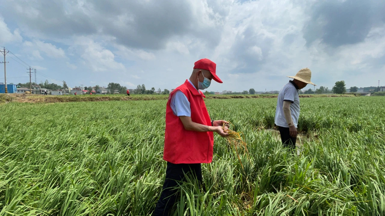 在随州市曾都区何店镇三岔河村,湖北农资控股公司农化服务专家徐正明一行在田间地头指导农户开展生产自救。