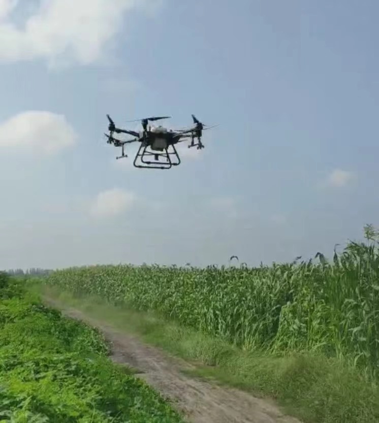 近日,在安徽皖北区域李寨村1700多亩的高粱地里,中农装备旗下中农国昌农服人员正在操作无人机进行打药。