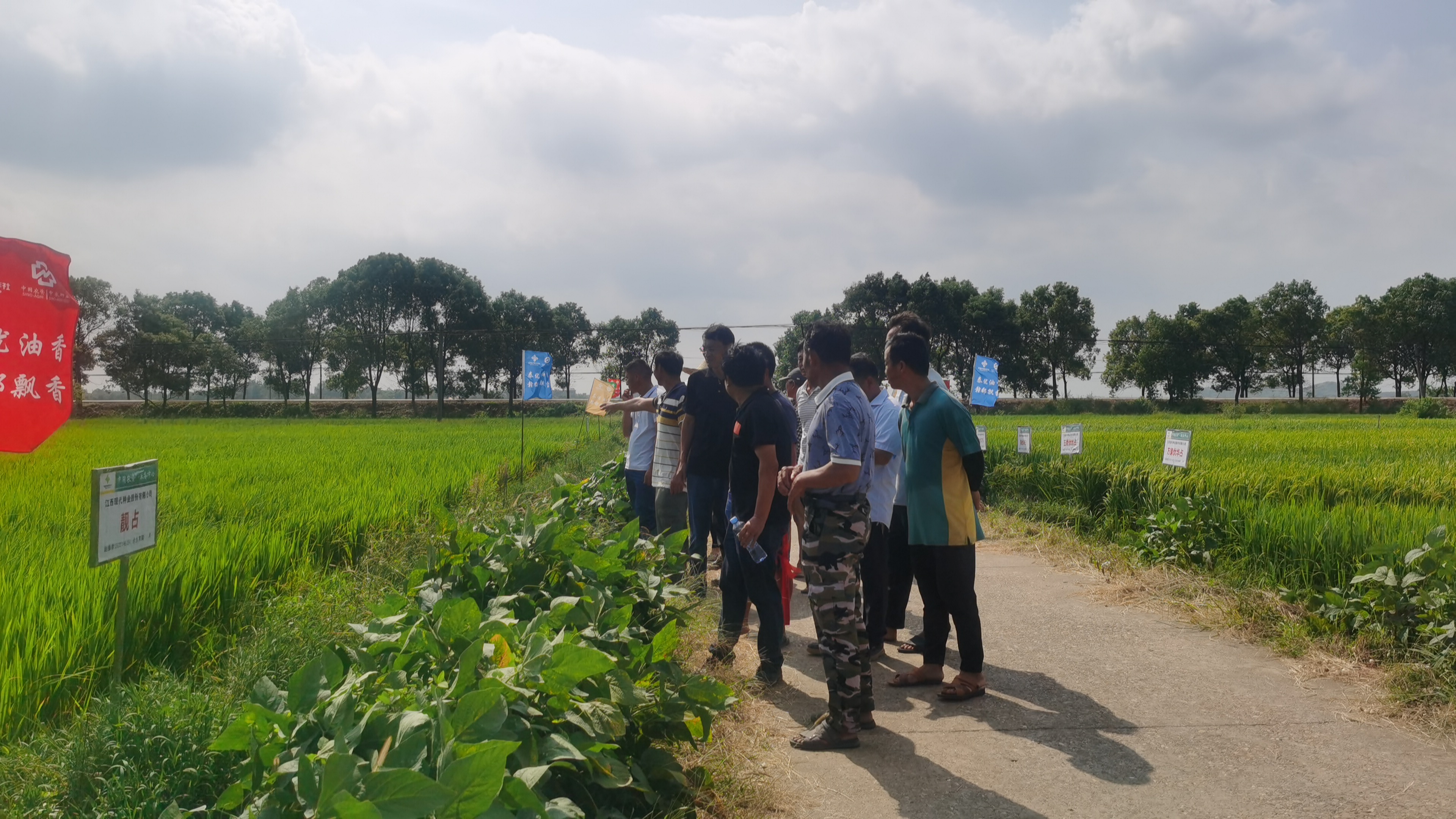 9月12日,流湖镇水稻品种展示田迎来了一批前来观摩的农民朋友。南昌中国农资®·服务中心技术服务人员赵小辉正在给大伙儿介绍水稻品种及田间表现。望着展示田内长势喜人、丰收在望的稻谷,在场农民纷纷竖起了大拇指。