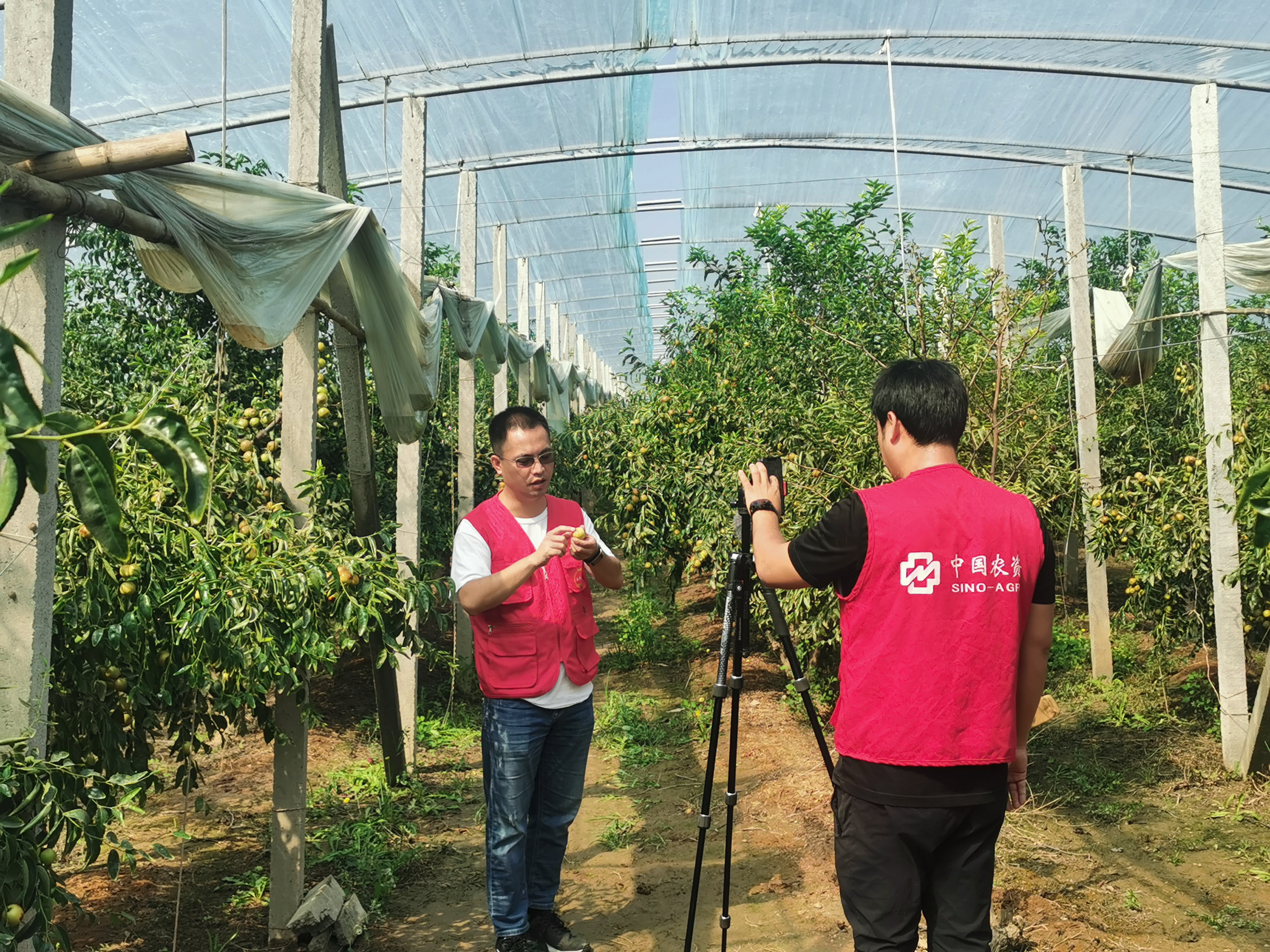 ®·服务中心的技术人员正在通过手机直播,向枣农传授丰产增收的秘诀。