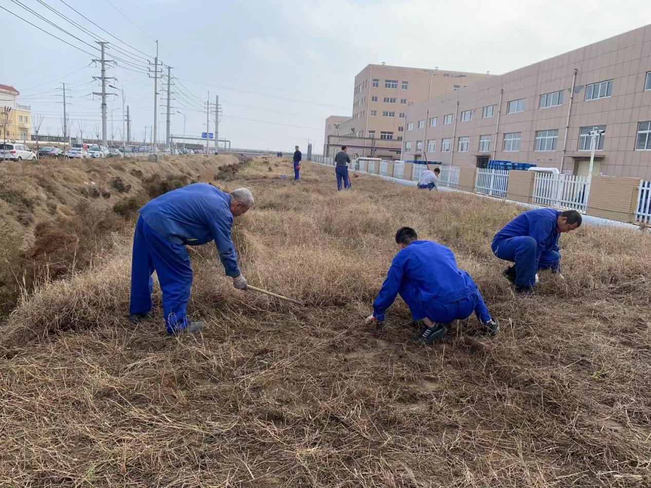 为在恶劣天气到来前以最快速度完成厂区易燃枯草的清理工作,中农联合潍坊公司各部门人员,在不脱产的情况下加班加点,轮流清理枯草。冬季的凛冽寒风阻挡不了大家的干活热情,一周的清理任务缩短至3天完成,保障了公司安全生产。