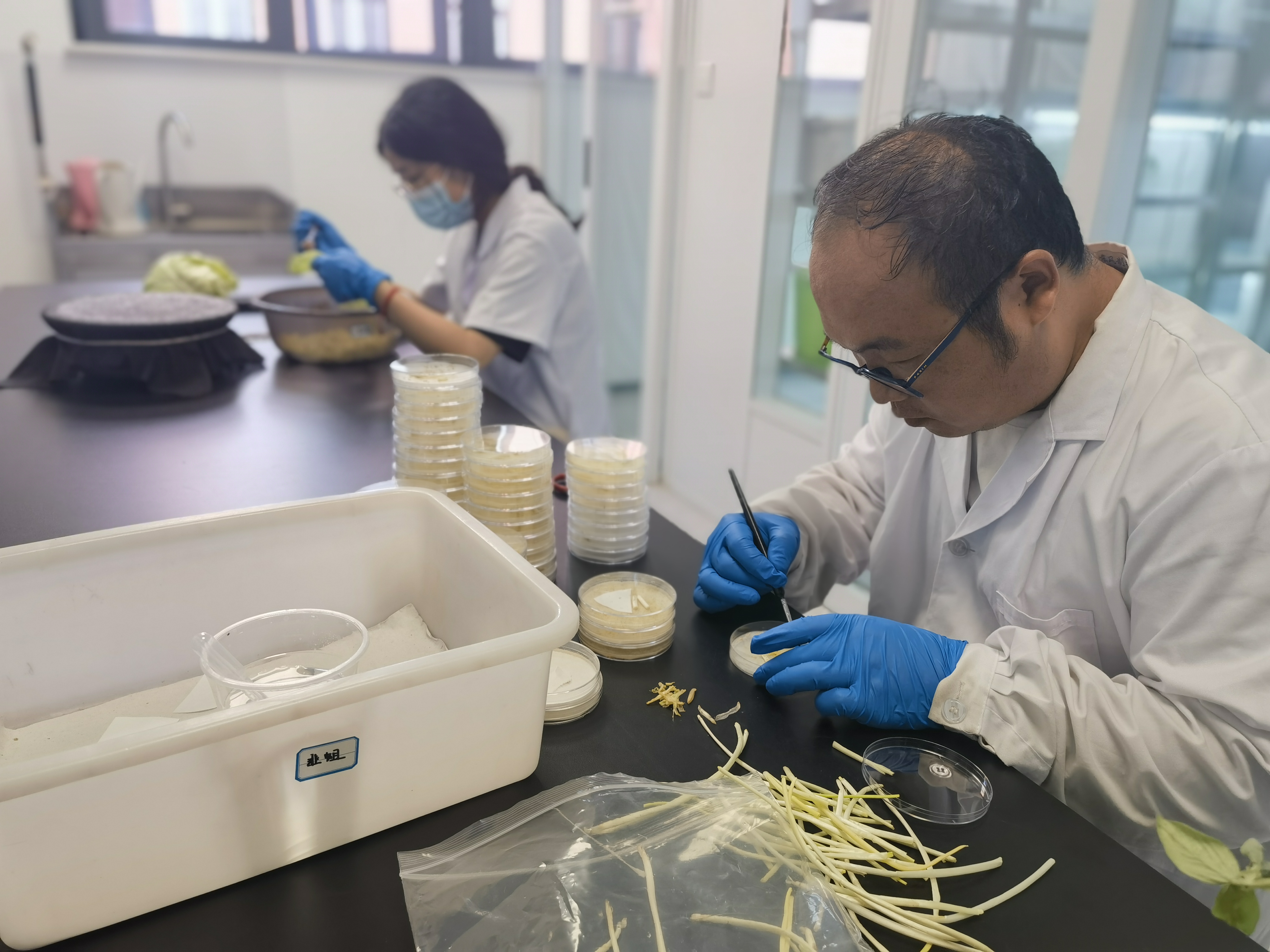 闷热的大棚内,科研人员正在对新药试验组、常规用药组和空白对照组的作物进行根系比照。使用“线玛”“根朵朵”的试验组根系粗壮,无线虫感染后的根瘤现象。而常规用药组和空白对照组,不同程度得被感染,并且根系稀疏无力。