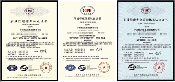9月21日,中农舜天生态肥业有限公司(以下简称中农舜天)收到北京中化联合认证有限公司颁发的质量管理体系、环境管理体系和职业健康安全管理体系三项认证证书,标志着公司“三合一”管理体系贯标认证工作圆满完成。