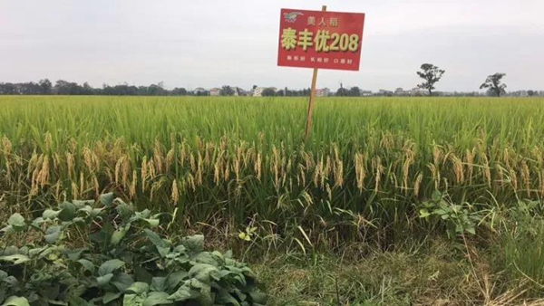 据了解,泰丰A是由广东农业科学院水稻所育成的一个优质的三系不育系,2009年申请保护,2015年获得植物新品种权保护证书。该品种配合力较强,目前主要作为配组优质杂交水稻种子的母本使用。以“泰丰A”为母本配组的品种已经在江西、广东、湖南、广西、陕西、福建、湖北等地通过审定。根据审定结果,相关品种适宜在上述地区做晚稻种植,部分品种在广东、广西也可以做早稻种植。通过区域试验,部分品种可以在四川、贵州等长江上游地区做中稻种植。