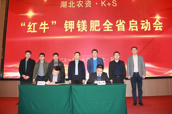 1月15日,中农集团旗下湖北农资控股公司在荆州隆重召开湖北农资 · K+S“红牛”钾镁肥全省启动会。德国钾盐团(K+S)深圳德钾盐贸易有限公司董事总经理郭延亮、湖北农资控股公司总经理彭光明出席会议并分别代表双方致辞。来自华中农业大学和深圳德钾盐公司农化专家教授以及省内120余名经销商代表参加会议。