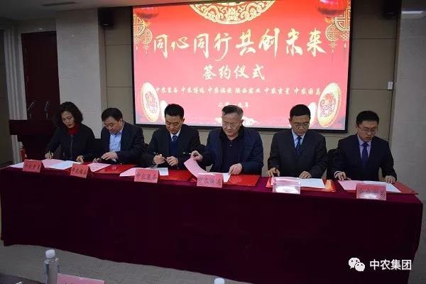 图为中农装备本部联合5家控股公司签订 《资源协同合作协议》