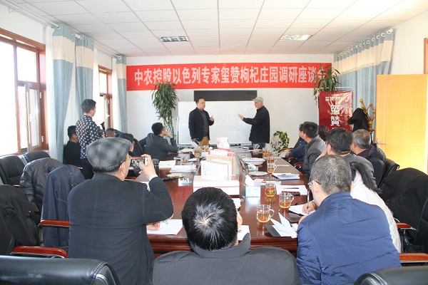 Eri Govrin博士是以色列知名农业专家,对该庄园万亩种植基地及当地气候、土壤、水资源十分了解,他在大量调研工作的基础上,结合自身专业知识,在座谈会上对枸杞种植技术及管理进行了深入细致的讲解,并根据基地实际情况提出了具体指导意见,帮助基地在枸杞种植技术和管理等方面全面提升。当地农业主管部门负责人、规模化种植基地负责人、枸杞种植户及玺赞庄园相关负责人参加了座谈会,大家对Eri Govrin博士分享的先进种植技术和管理理念表示受益匪浅。