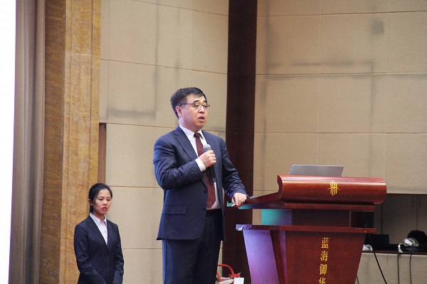 图为中农集团党委副书记、总裁、公司董事长王春林致辞