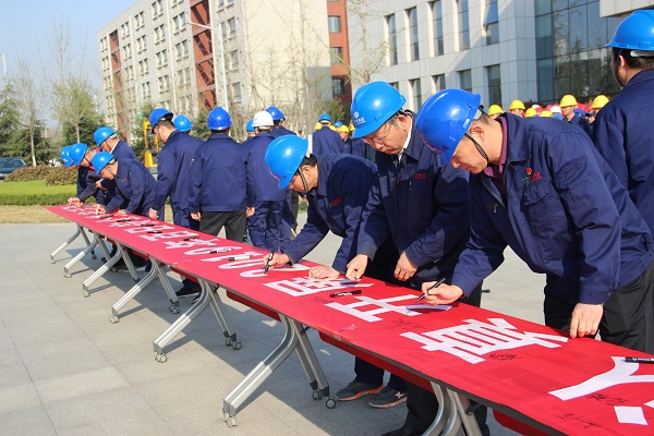 安全总监冯永平带领员工进行了庄严的安全宣誓活动。宣誓后,全体员工有序地在“认真开展2019年百日安全生产活动”条幅上郑重地签下了自己的名字,表达了员工对公司安全生产的决心和信心。