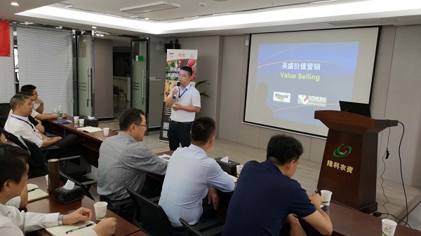 本次培训以美盛黄金搭档——美可辛、稼镁产品为主线,采取顾问式培训方式,从产品优势、施用方法,到营销技巧和策略的现场模拟,详细地阐述了如何开发和管理客户。