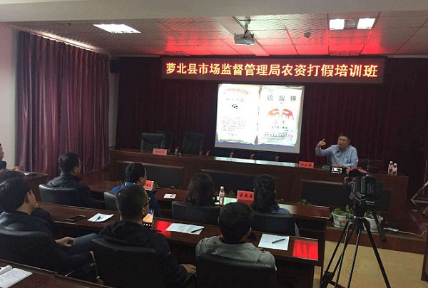 检查结束后,公司打假专员为当地执法单位、县供销社、农资经销商、农业种植户进行了一场辨别真伪中农产品的培训会。打假专员对近年来农资市场上出现的假冒中农案例逐一讲解,帮助执法人员提高对假冒中农产品的辨识能力,避免经销商和种植户误买到假冒的中农化肥。