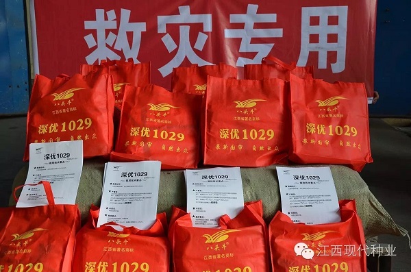 6月以来受强降雨影响。吉安、赣州、上饶等地发生了严重的洪涝灾害,为不误农时,尽早帮助灾农开展生产自救,江西省农业农村厅及时动用省级救灾种子,免费发往灾区。中农种业下属江西现代种业积极配合完成各项紧急救灾任务。6月11日接到救灾通知后,公司立即组织人员加班加点加工、包装救灾种“深优1029”,6月12日下午,5200公斤种子已发往吉水县等受灾地区,并配备栽培技术资料,确保用种安全。