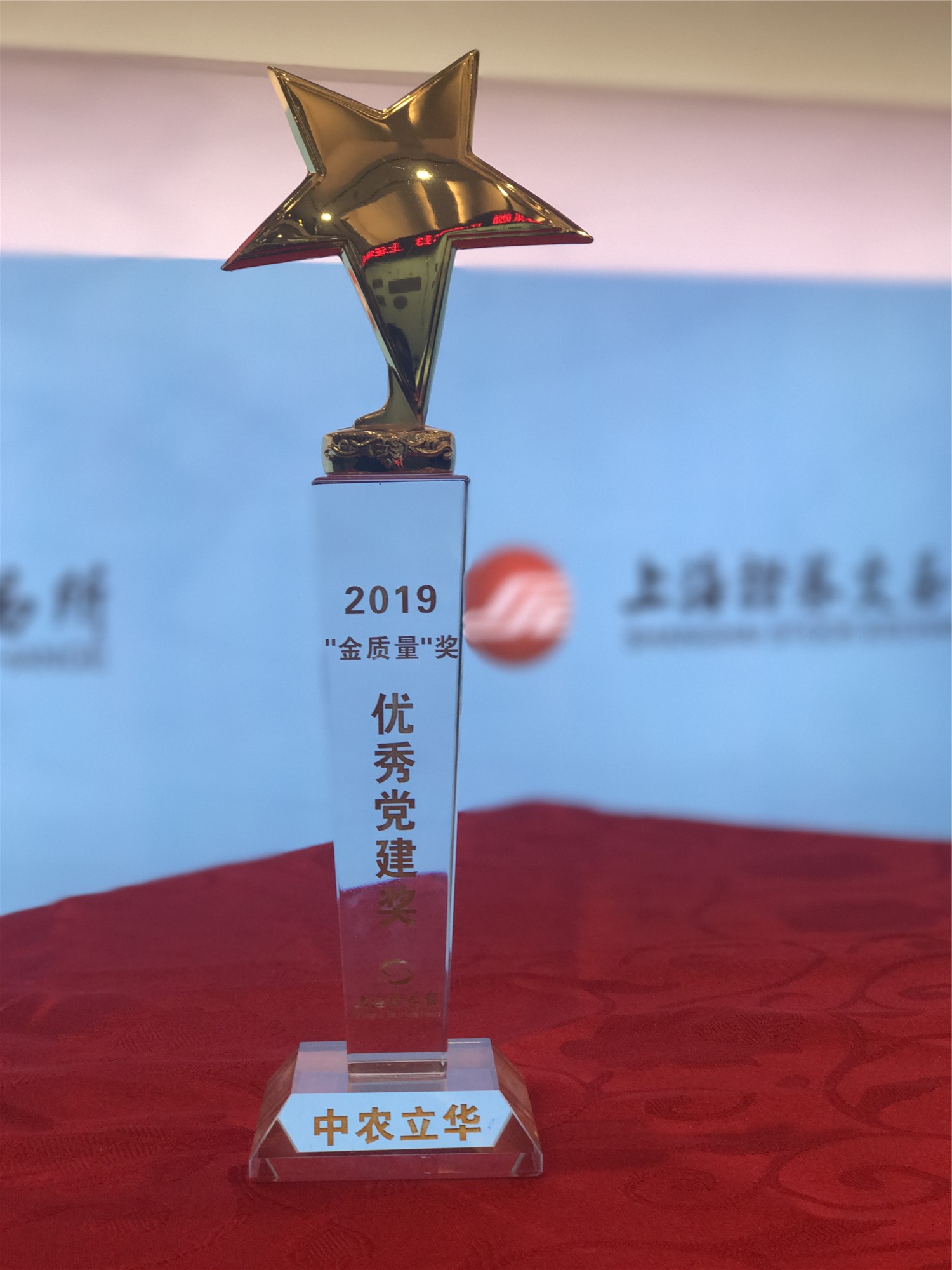 12月13日,2019上市公司高质量发展论坛暨“金质量”奖颁奖典礼在上海证券交易所举行。中农立华凭借在上市公司党建工作中的突出表现,最终从3000多家A股上市公司中脱颖而出,荣获上市公司优秀党建奖。