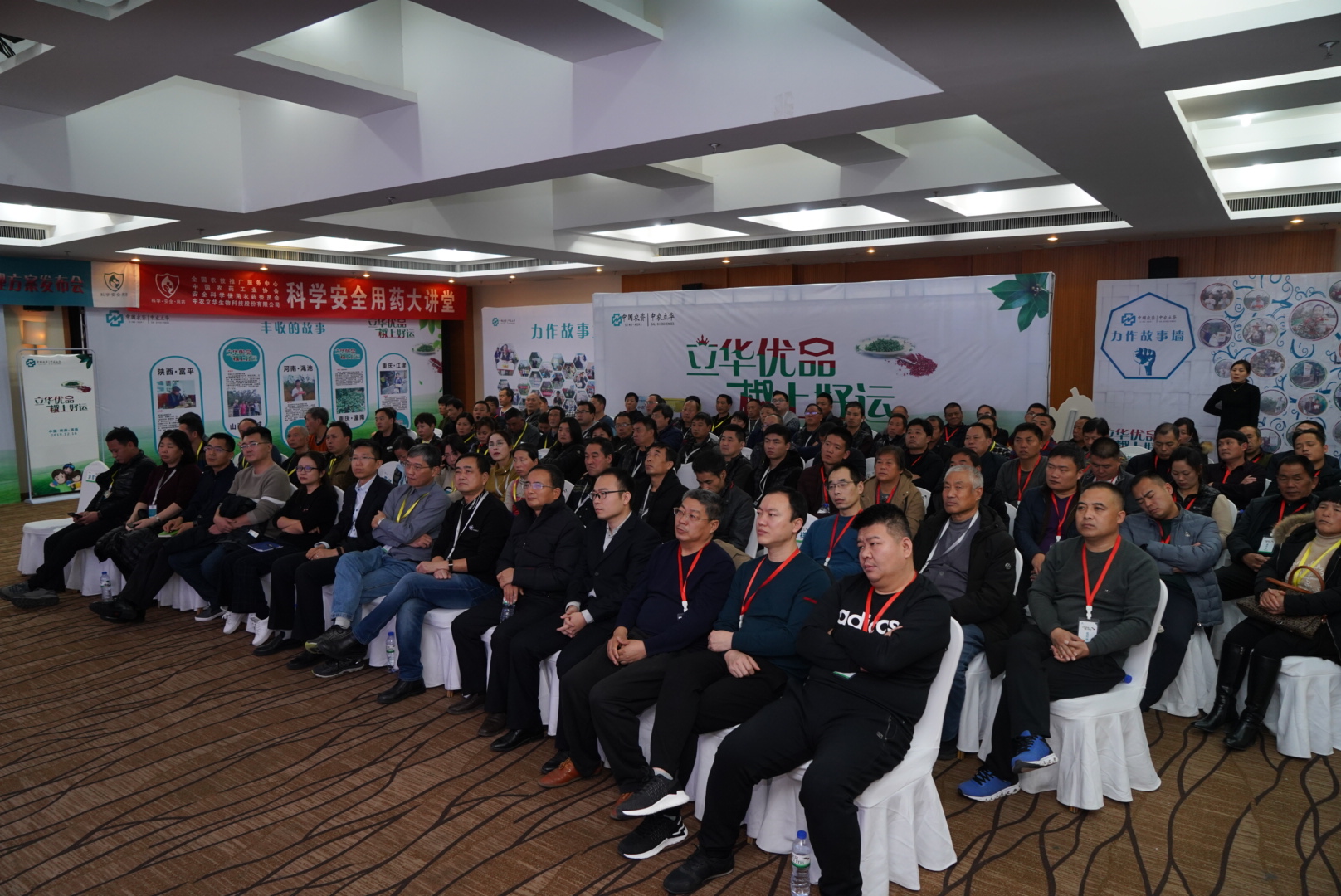 本次会议作为全国规模最大的花椒作物农资经销商大会,共吸引来自全国花椒主产区的100多位农资经销商参会。现场设有花椒主要生育期、中农立华花椒管理方案、花椒方案效果展示、丰收故事4个展示墙和花椒实物展示区。