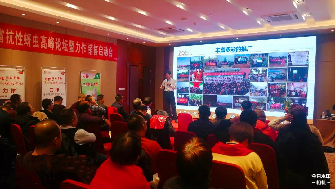 石原产业相关负责人向参会嘉宾介绍了“力作”产品的优势,中农立华相关负责人通过展示大量的示范试验数据证明了“力作”在防治花椒蚜虫难题上的优良效果,进一步提高了渠道经销商的销售积极性和信心。