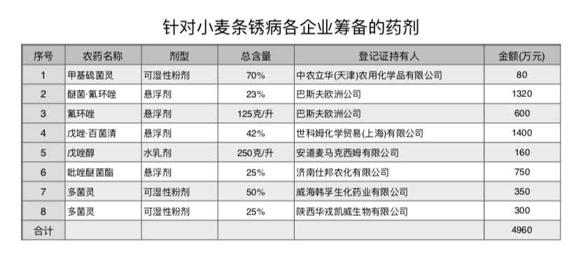针对形势,中农立华积极行动,携手巴斯夫、富美实、世科姆等12家国内外主要农药生产企业,对所需农药进行联合筹备,保障湖北主要病害的用药需求。截至目前,已筹备相关防治药剂总计1287吨,价值1.78亿元。