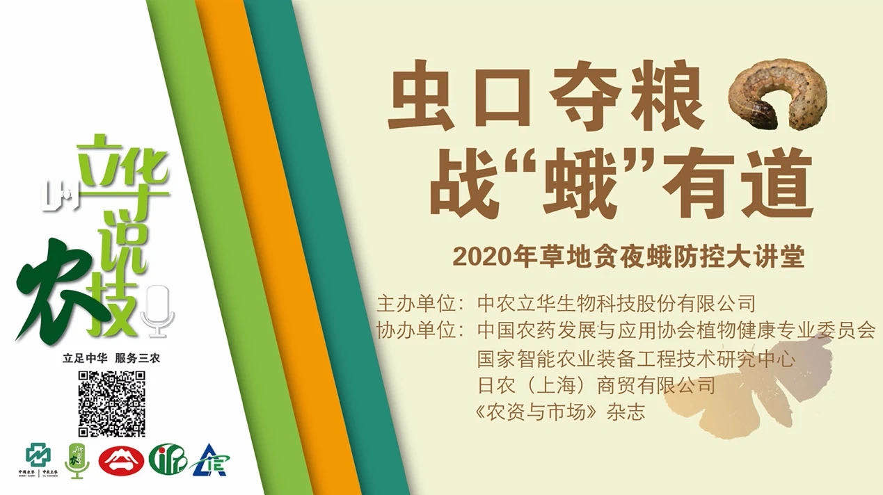 4月20-24日,由中农立华主办的《立华说农技·虫口夺粮 战“蛾”有道——2020年草地贪夜蛾防控大讲堂》系列讲座成功举行。本次活动得到了中国农药发展与应用协会植物健康专业委员会、国家农业智能装备工程技术研究中心、日农(上海)商贸有限公司、《农资与市场》杂志的大力支持。
