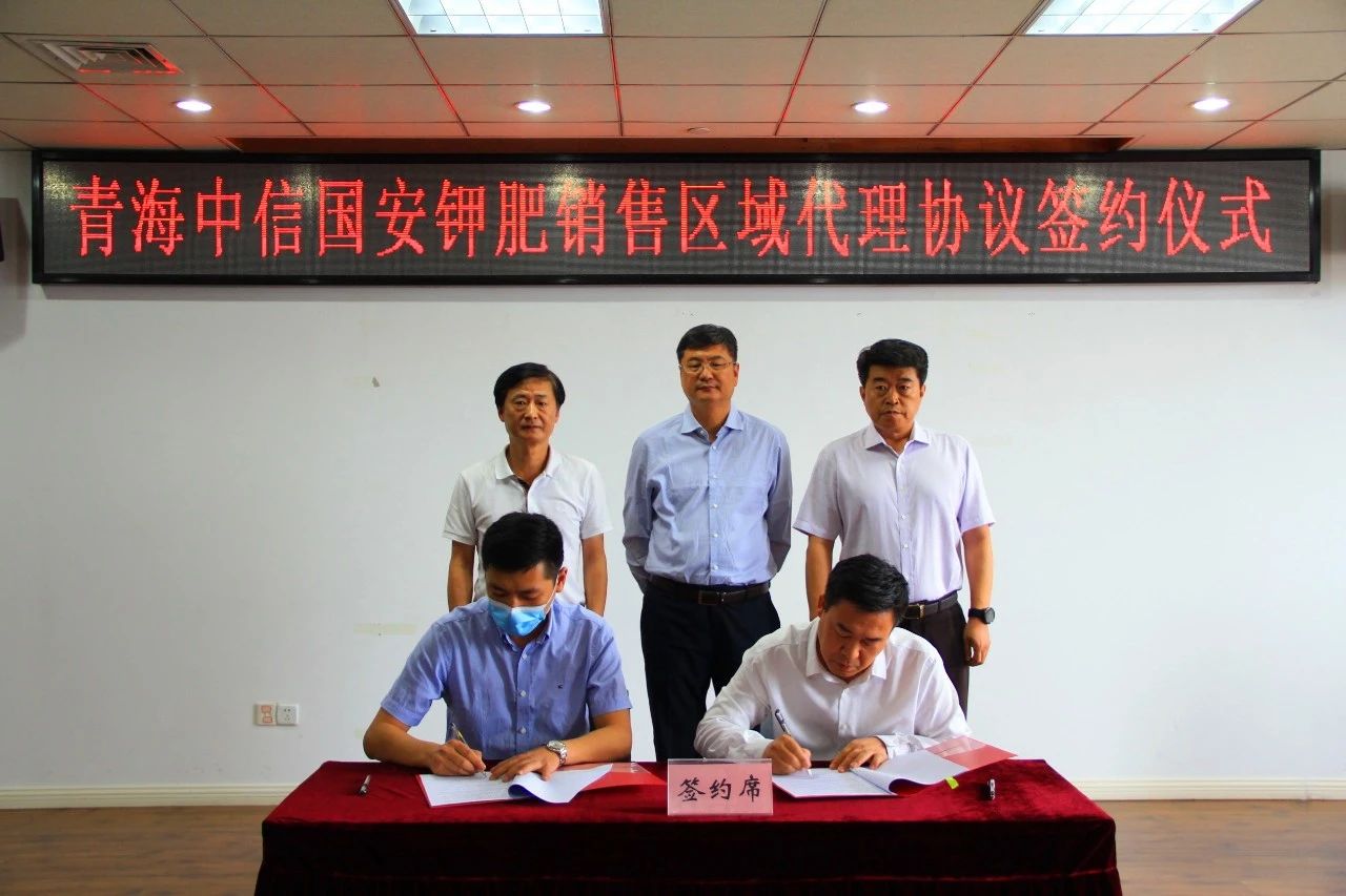 8月25日,青海中信国安锂业发展有限公司(简称青海中信国安)2020年年中钾肥销售工作会在武汉召开,会议明确了各代理商“国安”硫酸钾销售区域,中农控股携旗下中农(上海)化肥有限公司共同与青海中信国安签约“国安”硫酸钾在山东、新疆、河北、安徽、甘肃、宁夏、内蒙区域工、农业市场的7省独家代理权。