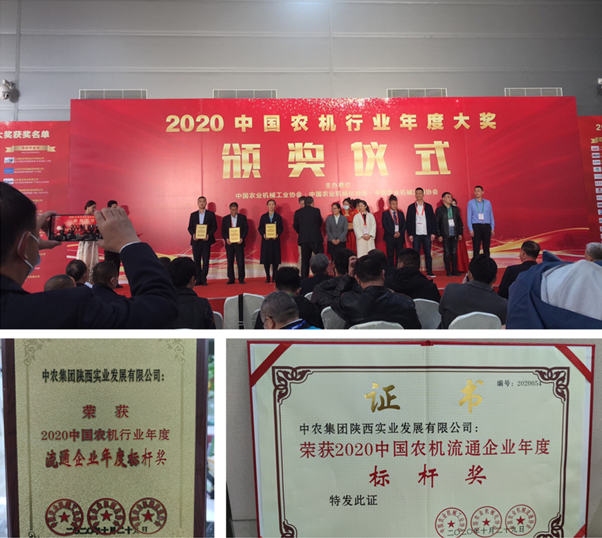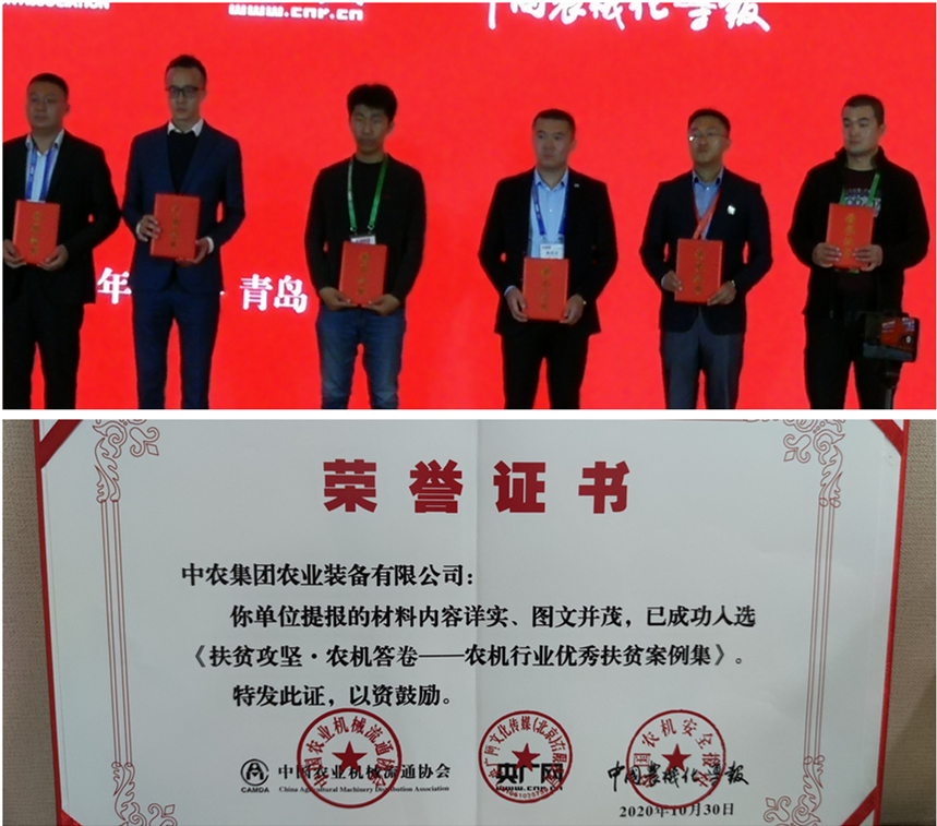 展会期间,中农装备旗下中农陕西实业公司荣获由中国农业机械工业协会等三家主办协会组织评选的流通企业年度标杆奖;中农国昌公司“政府+公司+贫困户”精准扶贫模式成功入选中国农业机械流通协会、中央广播电视总台央广网、中国农机安全报社联合开展的《扶贫攻坚·农机答卷——农机行业优秀扶贫案例集》。