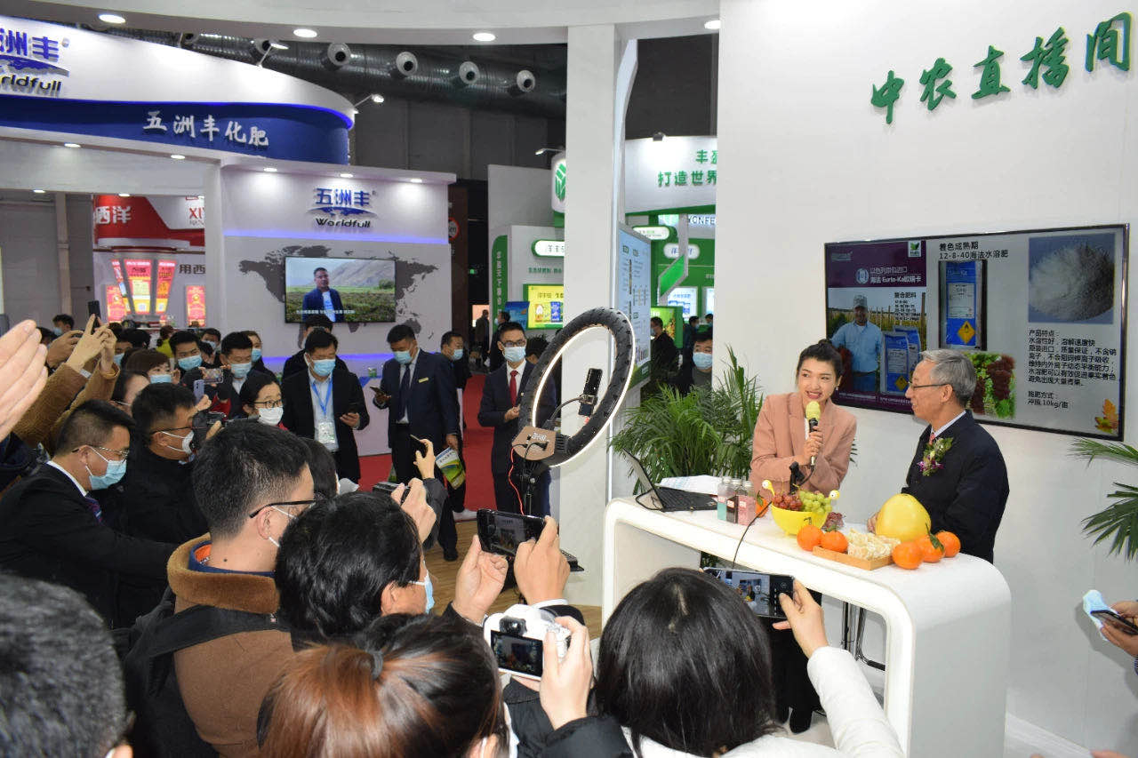 疫情催生出直播带货、农技在线指导等新业态。同样,今年中农控股也首次在磷复肥展会现场设立“中农直播间”,为场外观众打造高效的线上体验。来自原料肥事业部、磷复肥事业部、农业服务事业部的10位大咖各显身手,化身网络主播,围绕微生物技术改良土壤、全球钾肥市场、特肥应用、液体肥市场前景、新型水溶肥推广等话题与网友交流互动。