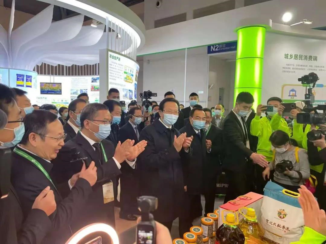 展会开幕首日,农业农村部部长韩长赋、重庆市市长唐良智等有关领导在总社党组成员、理事会副主任侯顺利的陪同下参观了“供销专馆”。侯顺利来到中国农资农业物联网沙盘前,详细了解中农控股现代农业服务体系建设情况,勉励广大员工始终牢记为农服务根本宗旨,聚焦为农服务主责主业,不断完善经营网络和服务体系,积极拓展服务领域,为加快推进农业农村现代化和乡村振兴贡献供销合作社力量。