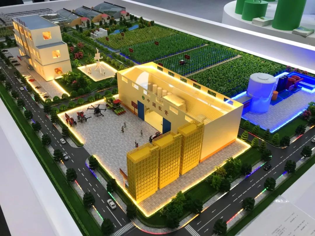 测土配肥、配套相应的农机、飞防、粮食烘干、水肥一体化、土壤修复、畜禽粪污及秸秆综合利用、大棚智能化等技术集成,展厅内精致的农业物联网沙盘模型生动地展现了中国农资现代农服中心日常工作的各种情景。