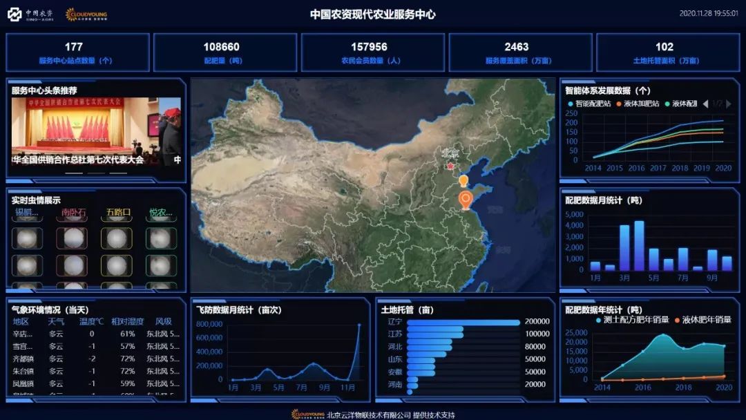 手指轻轻一点,气象、病虫害、土壤、农机作业、设施农业、粮食收储等数据即刻清晰展现,中国农资农业数字化展示平台将复杂的大数据技术描绘地通俗易懂。