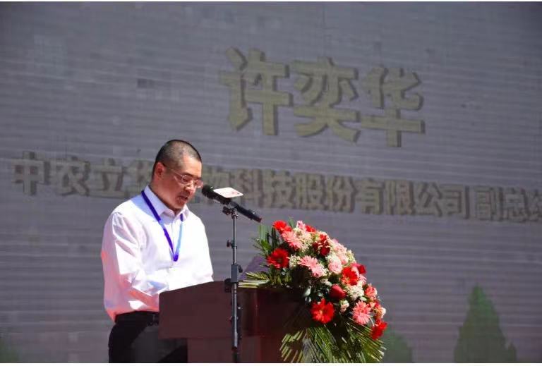 许奕华在致辞中介绍:“中农立华秉持绿色防控理念,贯彻“预防为主、综合防治”植保方针,通过引进绿色、低毒、低残留农药,制定符合当地实际情况的作物健康解决方案,在减少农资产品使用量的同时,提高农产品品质,确保农民增收。”