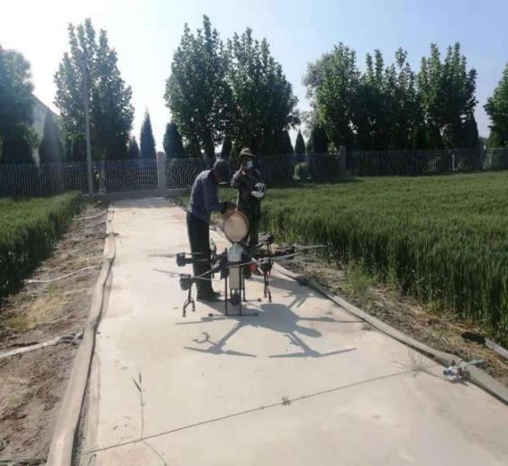 条锈病发病点的出现,让大家神经紧绷起来。在最短时间内,农服中心的无人机、农药迅速到位,飞防人员马上对发病点及周边200亩范围内的麦田进行了飞防作业。