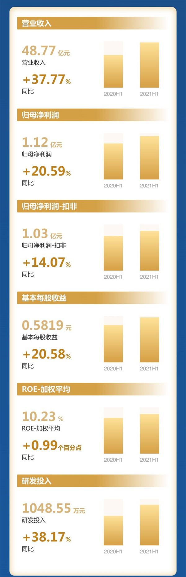 8月25日,中农立华披露的2021年半年报数据显示,公司上半年实现营业收入48.77亿元,同比增长37%;实现净利润1.11亿元,同比增长21%;基本每股收益0.58元。