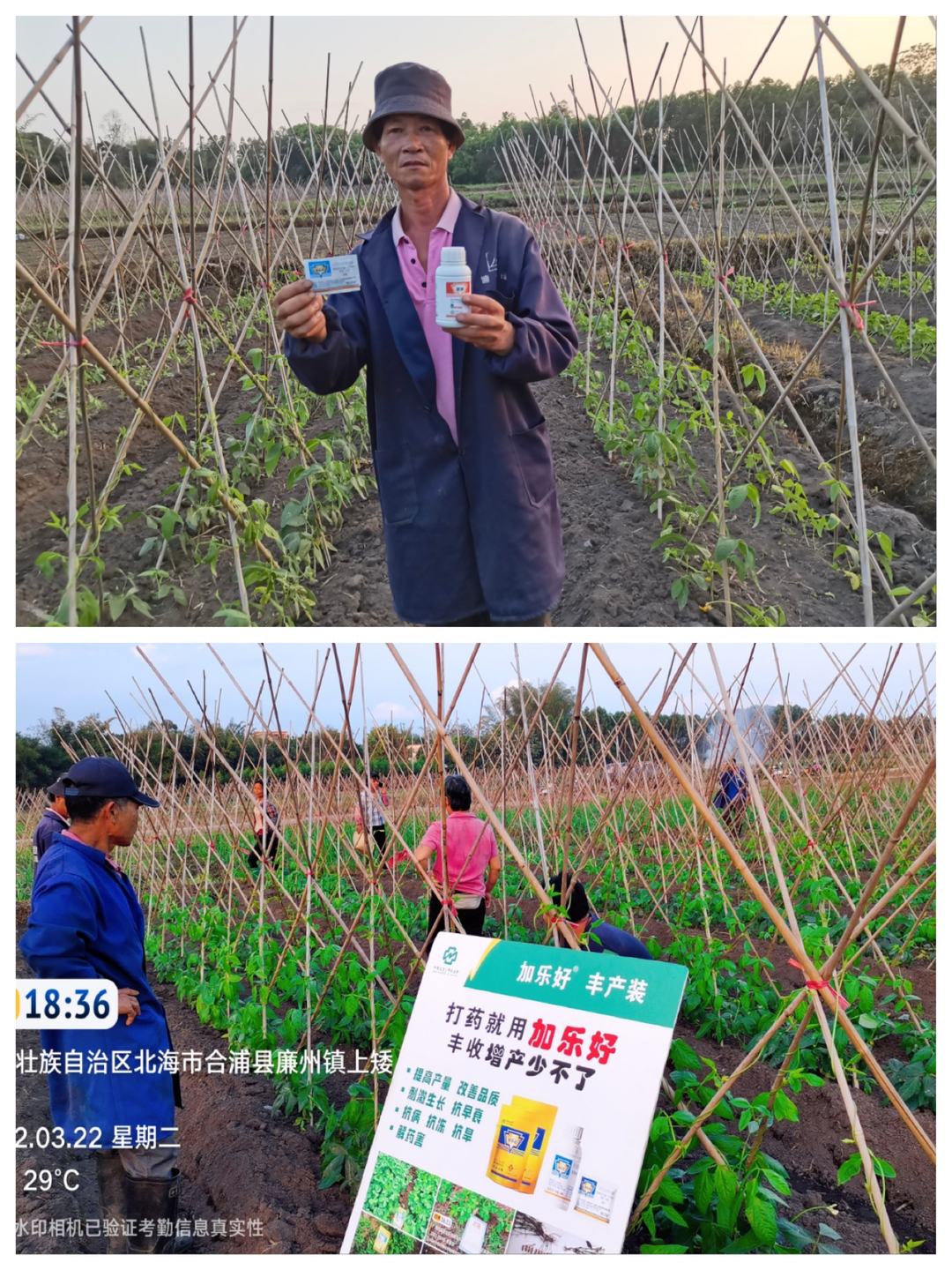 为了挽救伤苗,减少农户损失,广西团队深入豆角种植区进行实地勘察,发现田间豆角僵苗的根源是根系老化受损,幼苗发育迟缓。对此,技术人员为农户定制了立华豆角管理方案,并进行施药处理。7天后,施药田块的豆角僵苗状况逐渐好转,茎秆变得茁壮、叶片油绿发亮,且复叶花蕾开花,作物整体情况赶超邻近田地苗状,周边菜农也纷纷慕名前来参观,赞叹立华方案优异的防治效果。