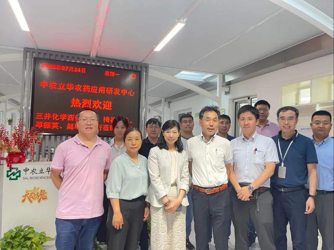 7月24日,三井化学植保株式会社海外事业部中国担当西條洋平、市场部部长助理梅谷训永、三井化学北京事务所邓振英和赵明宇一行4人到访中农立华农药应用研发中心,与中心主任张小军、市场部作物经理高文兴、产品开发部登记经理杨颜霞等就溴虫氟苯双酰胺混剂开发进展、芙利亚市场概况及未来开发规划进行交流。