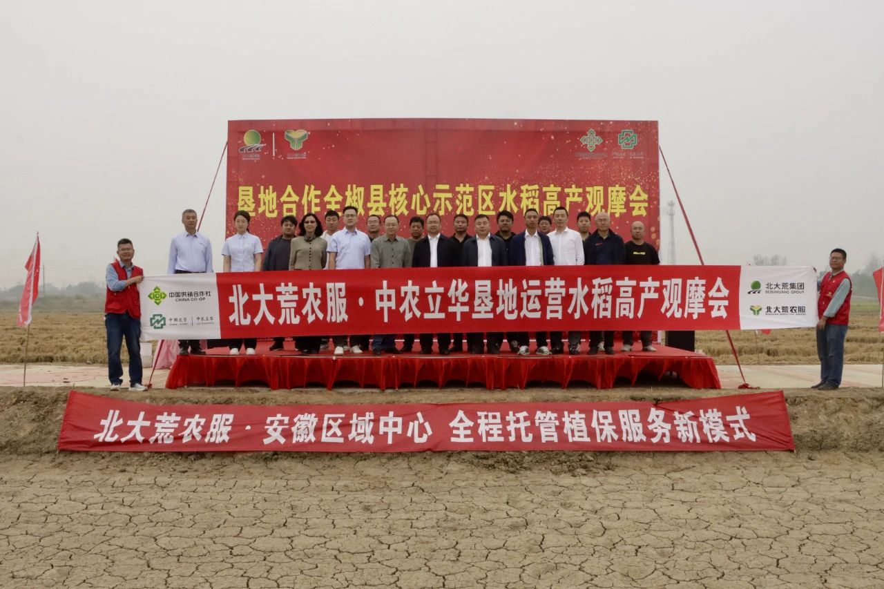 2023年,中农立华携手北大荒农服集团,在安徽省滁州市全椒地区建立“四高”示范农田,即高标准、高技术、高品质、高质量农田。通过将中农立华成熟本地化的作物健康解决方案与北大荒现代智能化的农业运营模式相结合,满足种植户全方位的种植需求,大幅提升当地水稻种植水平,实现“地方、企业、合作伙伴、种植户”四方共赢,为双方在全国范围内推广全程托管植保服务新业务模式奠定基础。