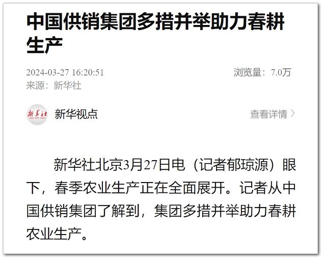 眼下,春季农业生产正在全面展开。记者从中国供销集团了解到,集团多措并举助力春耕农业生产。